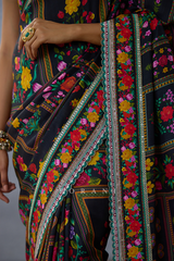 Redefining elegance in the shades of the season with Torani Classics. Crafted from handwoven Chanderi, the Dil Shaad Aziza Saree features digital prints and fine detailing. The beautiful black hue of this saree is sure to turn heads.
