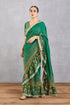 This Panna Heba Saree is crafted from a combination of luxurious handwoven thin Chanderi, Silk Organza, and Cotton Silk fabrics. With hand block print and digital print, this green saree is sure to be a standout. Perfect for special occasions or everyday wear, this saree is sure to make a statement.