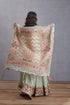 This Jaituni Rania Scarf is perfect for adding a stylish touch to any outfit. Featuring a Digital print of a sage green peacock pattern on Handwoven Thin Chanderi with a soft Silk Organza fabric, this scarf comes in a beautiful soft green hue. It's the perfect accessory to spruce up any ensemble.