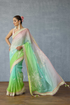 Crafted with an ombre-toned organza fabric, the Prakriti Vihana Saree is designed to be a staple for summer weddings. It features intricately embroidered tropical motifs and the seamless blend of powder blue, pastel pink and parrot green adds a subtle elegance to every occasion.