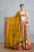 Look ethereal this summer with the Chitrangi Nihita Odhni. It is crafted with a lightweight silk crepe organza fabric, and printed with multicolour chintz florals digitally printed on the yellow fabric. It is also accented with striped and scallop borders.