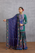 The Mayurika Dakshaa Odhni is crafted with a lightweight silk crepe organza fabric, printed with digital chintz motifs all over. The odhni is a distinct find with its tassel details.