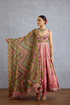 The Pankaja Sarika Odhni is the perfect addition to your festive wardrobe. With its eye-catching pink hue along with digital print on a delicate silk crepe organza fabric, this odhni is highlighted with hand motifs, sequins and tassel work.