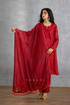 Be mesmerized by the beauty of the Surkh Samrina Odhni. This stunning accessory is composed of delicate silk crepe organza in a bright red shade and is adorned with intricate hand embroidery and hand sequin work. Perfect to add a touch of elegance to any look.