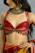 The Chitrangi Blouse is tailored in silk, featuring coordinated digital prints with subtle embroidered highlights. Designed with a striking backless silhouette and tie-up detailing, it adds a bold yet elegant finish to the ensemble.
