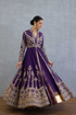 A signature Torani style, the Raqse Jahan Jacket Set is inspired by the humble Sufi chogas and embellished anarkalis worn in the Indian royal courts in the past. Crafted in Muslin Silk ansd georgette, the set features a jacket and a dress in a stunning purple shade, with intricate Zari embroidery and heritage Dabka work layered onto it. It is sure to turn heads at any occasion.