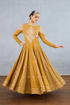 The Mehre Reja Anarkali Set is a stunning tribute to Indian craftsmanship. Crafted in the finest jeni silk, its ochre yellow hue exudes unmatched elegance. Adorned with intricate zari embroidery, and heritage badla and dabka work, this set is a true vision of luxury.