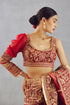 Adorn your traditional outfit with our stylish Sindoori Mahnoor Blouse. Crafted with a combination of silk velvet and silk organza, it features intricate details in red, such as Gota embroidery, dori embroidery, and hand adda work. Perfect for any festive event.