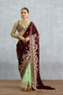 The Qarmazi Farishti Nazra Saree is curated for the queens- the ones who choose bold elegance and ensembles that speak of legacy. Crafted with velvet and a soft net fabric, the saree boasts divine work of art on maroon. The intricately embroidered motifs are an ode to royal aesthetics, making this ensemble a timeless find for your closet.