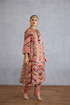 This Pankaja Asthika Kurta Set is crafted with a silk crepe organza fabric to offer utmost comfort, while keeping them chic and stylish. The kurta set is designed with multicolour digital chevron prints and intricate florals. It also features a distinct laced collar that makes it look attractive. The set comprises of kurta, pants, and odhni.