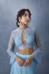 The Aasmani Anahita Blouse is an exquisite garment crafted from top-quality silk organza and silk lycra. Accented with beautiful aari embroidery, this blouse is perfect for special occasions. The luxurious fabric and intricate details make this piece a blue hue a must-have for your wardrobe.