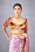 The Aftaabi Waheeda Blouse by Chandni Raatein is a luxurious statement piece. Crafted from a luxurious blend of silk velvet and crepe with intricate embellishments of hand embroidery, dori embroidery, hand adda work, and gota embroidery, this yellow blouse is perfect for special occasions.