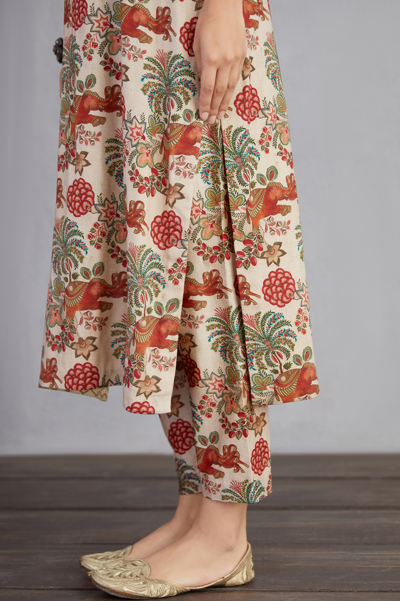 Look elegant and timeless with this Airawata Ecru Sehmat Co-ord Set, featuring Cotton Silk for the kurta and Handwoven Chanderi for the pants. The natural beige color will make you the center of attention at any event. Get this stylish set that includes a kurta and pants and pair with your favorite accessories for a classic look.