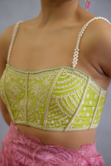 The Angoori Ayla Bralette is crafted with jeni silk, in an elegant green colour. This bralette adds a very distinguished look to your luxurious summer wardrobe and is sure to turn all attention to your direction.