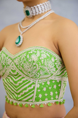 The Patraja Ayra Corset is crafted with jeni silk, in a vibrant green colour. This corset gives a very distinguished look to your luxurious summer wardrobe and turns all heads to your direction.