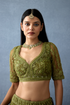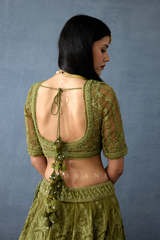 This Bankuri Advika Blouse is made of a soft butterfly net and cotton silk blend, delicately hand-embroidered and handmade block printed in green. Perfect for any special occasion, it is sure to be the highlight of your outfit.