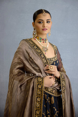 Embrace the unmatched elegance of the Bhadra Kyda Odhni. Crafted with exquisite shimmer Organza and embellished in detail with Pearl, Zari and Dori work, this one is an exotic addition to your outfits.
