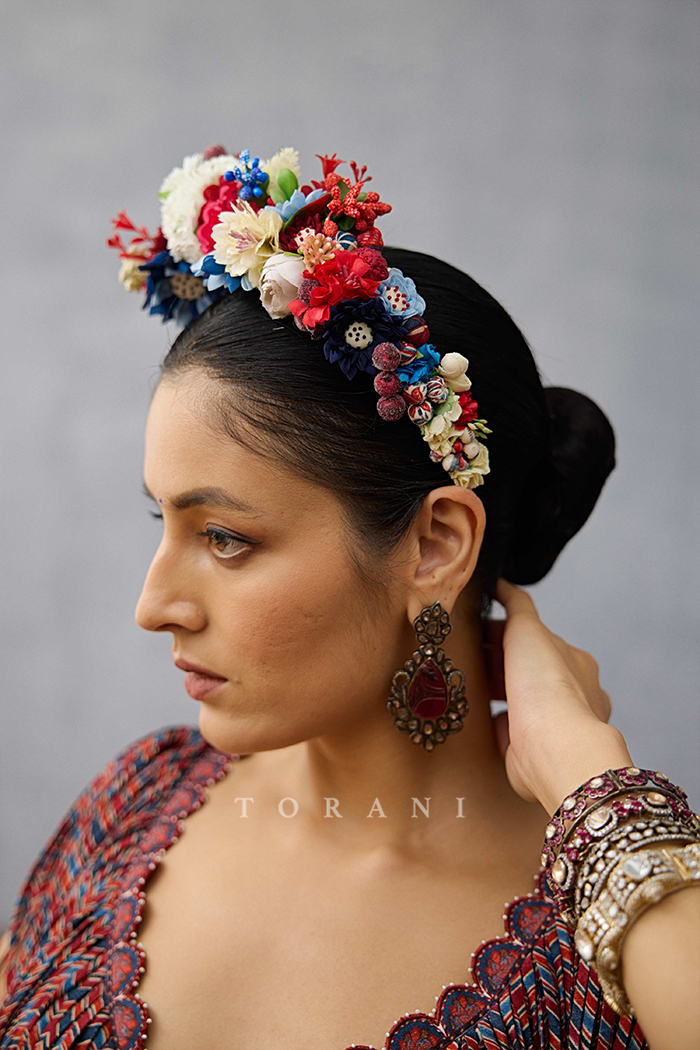 The Coromandel Amaira Mathapatti is a unique accessory for your summer getaways. The floral accents of this mathapatti makes it a striking addition to summer soirees or even sundowners!