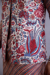 The Coromandel Vibhav Bandi Set is crafted with a luxurious jeni silk fabric and is the perfect find for the festive summers. The set includes a kurta, pants and a bandi, designed with floral motifs and chevron prints.