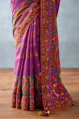 Redefining all shades of elegance with Torani Classics. Crafted in Jeni Silk and adorned with beautiful prints the Dil Kusha Anam Saree is a perfect blend of luxury and elegance. This purple piece is a must-have for your wardrobe.