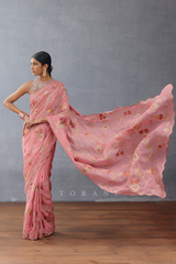 Redefining elegance in the shades of the season with Torani Classics. Crafted in Organza, the Dil Ruba Safiyya Saree is embroidered and finished with fine details. The beautiful blush pink hue adds a sense of subtlty and grace to your closet.