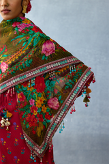 With its delightful prints and gorgeous design, being wrapped in the gorgeous Dil Saaz Wael Scarf feels like a small slice of luxury heaven. Style it around your neck, your hair, or knot it to your bag- this scarf functions as a statement piece wherever it's placed.