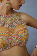 The Dil Seher Safiyya Blouse is a stylish addition to any wardrobe. Crafted from Butterfly Net and adorned with fine embroidery, this blouse brings a feminine touch to the attire.