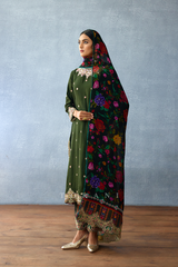 The Dil Shadaab Urvi Odhni, made from organza fabric is a perfect blend of elegance and beauty. Decorated with an intricately embroidered border, it's sure to make your festive outfit stand out.