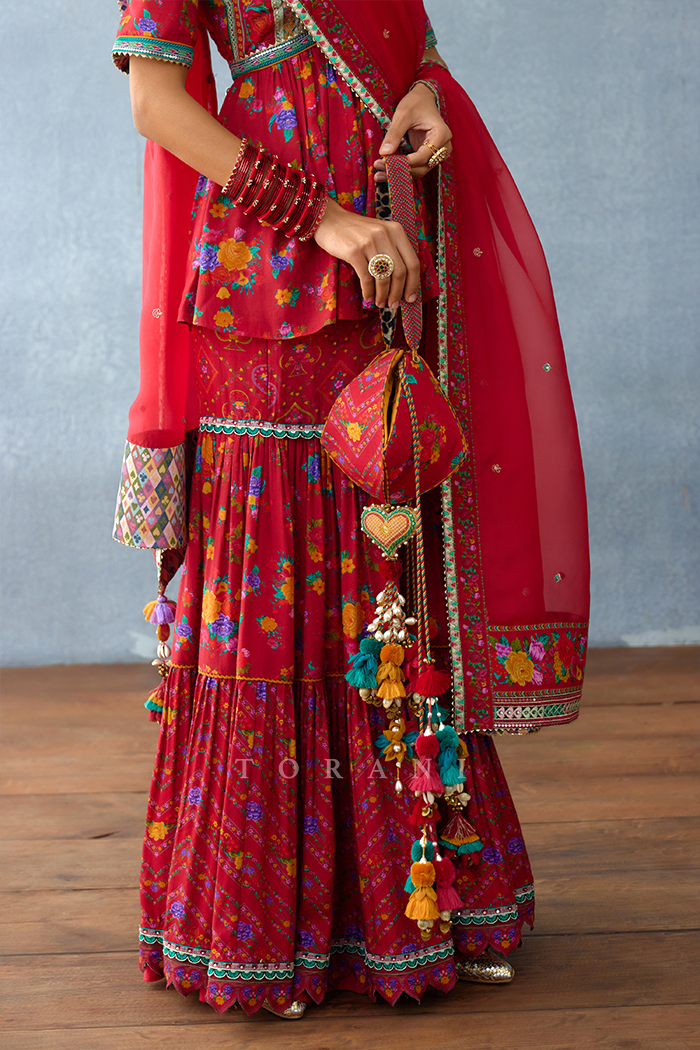 Sure to make you stand out, the Dil Surkh Dana Potli is a feast to the eyes of the beholder. Crafted in the long-lasting Jeni Silk with authentic prints and gorgeous, playful handmade tassels which would make it a prized accessory that always adds to your festive outfits.