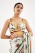 Bralette with an open back, enhanced with pops of candy hues infused into diamond checks. It is paired with our Mahua Saree for a look that's both graceful and modern.