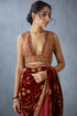 Express yourself in this gorgeous Gudhal Alankrita Blouse, expertly crafted with exquisite detailing. The vibrant red chanderi fabric features intricate mirror work, hand adda work and hand embroidery, offering a textured look with unique visual appeal. Perfect for any special occasion.