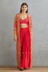 Introducing Gul-Kand Daavya Cape, made from luxurious Silk Organza, Cotton Silk, and Silk Crepe and decorated with Aari embroidery and quilting. This beautiful pink garment will bring a touch of sophistication to any wardrobe.