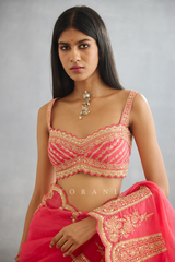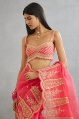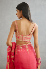 Add a touch of style to your wardrobe with the Gul-Kand Zarra Bralette. Crafted from a blend of raw silk and cotton silk, it is hand-embroidered and adorned with dori embroidery and hand adda work for a unique finish. The pink color will add a subtle and elegant touch to your look.