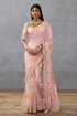 This Gul-Mohar Yuvani Saree features a luxurious blend of Silk Crepe, Butterfly Net, and Cotton Silk fabric, stylishly adorned with hand embroidery, dori embroidery, and hand adda work. The enchanting pink hue is sure to turn heads.