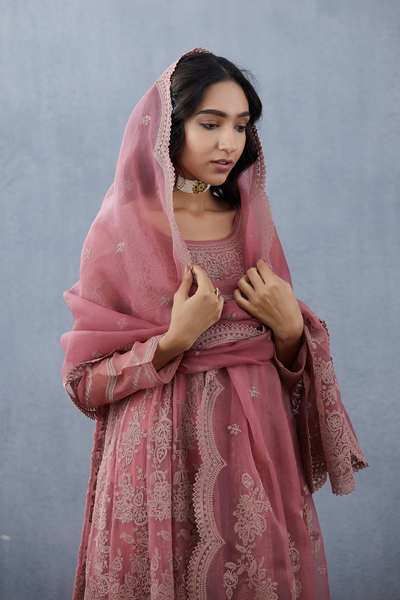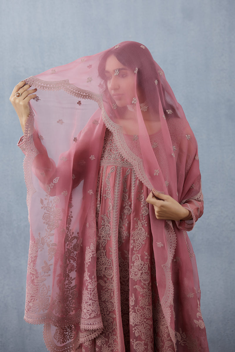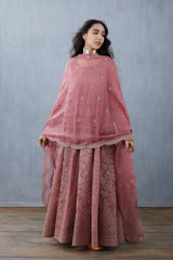 This Gulbarg Sutlej Odhni is the perfect choice for special occasions. Expertly crafted from luxurious Silk Organza in a lovely pink color, this Odhni is adorned with delicate Dori embroidery. The exquisite combination makes for a timeless look that you can enjoy for many years.