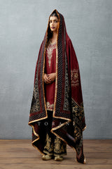 Feel stylish and turn heads with our Gulghast Zeenat Odhni. Crafted from luxurious Silk Velvet fabric, this jet black Odhni features a beautiful Bhagalpuri print and Gota embroidery. Perfect for formal occasions or comfortable wear, this versatile piece will become your go-to.