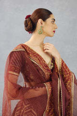 This Gulnar Oorjita Lehenga Set is crafted from luxury handwoven Chanderi and Cotton Cotton Voile fabrics with an eye-catching digital print. The set includes the lehenga, blouse and odhni in vibrant red. Expect superior comfort and lasting quality.