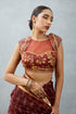 The Gulnar Ridaa Blouse is a must-have piece of clothing for any wardrobe. Crafted from the finest slub silk fabric, the blouse is sure to keep you comfortable and stylish. Its red color adds vibrancy while the digital Bhaglpuri print and Gota embroidery provide the perfect finishing touch.