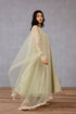 This Jaituni Aarna Odhni offers a luxurious blend of fashion and elegance. Crafted with sheer Butterfly Net fabric, it is adorned with intricate Dori embroidery in a sage green shade and finished with a delicate scallop border for a sophisticated look. Perfect for special occasions, this will bring a touch of class to any ensemble.