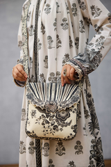 The Kalamkari Aashi Sling Bag is a fine piece of accessory for your summer days. The duck canvas fabric and the monochrome digital chintz print creates an unique appeal, and adds a luxurious touch to every outfit.