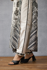 The Kalamkari Aashika Co-ord Set is crafted with a soft linen fabric, digitally printed with detailed chintz florals. The set comprises of a long kurta and pants. The monochrome print of the set is all set to make your summers comfortable & stylish!