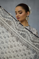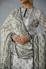 The Kalamkari Dakshaa Odhni is crafted with a lightweight georgette fabric, printed with digital chintz motifs all over. The odhni is a distinct find with its tassel details.