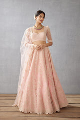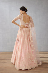The Kaner Hansini Lehenga Set is an exquisite choice for those looking for a standout look. This old rose pink ensemble is made of butterfly net and cotton silk fabric and features dori embroidery, resulting in a sophisticated and elegant design. Look and feel your best in this timeless and graceful set.