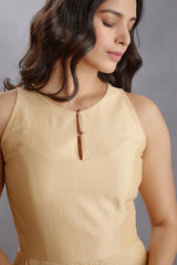 This Kasturi Dhuni Dress is a stunning mix of traditional and contemporary styling. Featuring a handwoven Chanderi fabric coupled with a soft cotton voile, this dress is sure to be a stylish staple in your wardrobe. The beige color beautifully complements the subtle digital print work for a timeless look.