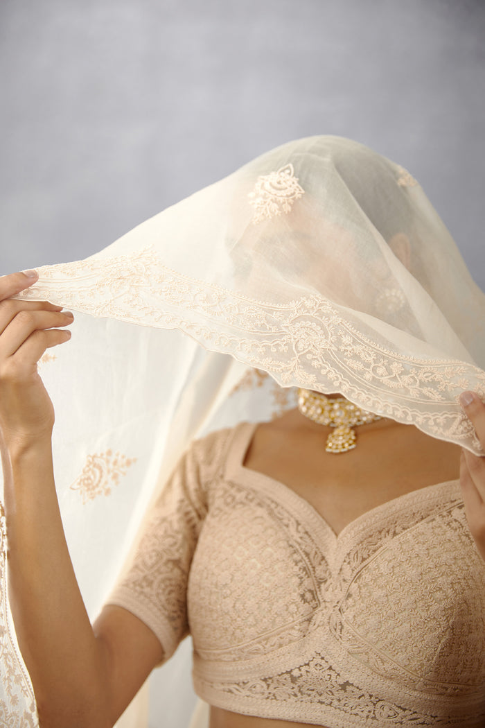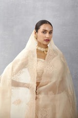 The Kasturi Meher Passa Odhni is a stunningly elegant piece that will make you stand out in any event. Crafted from luxurious Silk Organza and intricate Dori Embroidery, this beige Odhni is sure to become a favorite. Feel enchanting and beautiful with Kasturi Meher Passa Odhni.