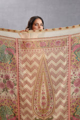 The Kasturi Rania Scarf features a luxurious Handwoven Thin Chanderi fabric with an exquisitely detailed Musk Beige peacock print, perfected with a hint of Silk Organza for added texture and depth. This beautiful Beige scarf is designed with a Digital print for a timeless, elegant finish.