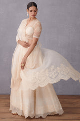 Experience the beauty of ivory and traditional embroidery in the Mogra Advaita Lehenga Set. The set includes an intricately crafted Lehenga, Blouse, and Dupatta in luxurious Silk Organza, Cotton Silk, Butterfly Net, and Silk Lycra fabrics. Enjoy the comfort and elegance of Aari Embroidery, a centuries-old technique used to create sophisticated designs.