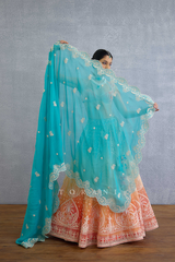 The Neelima Meera Odhni is crafted with a lightweight organza fabric designed with detailed embroidery upon an gorgeous blue hue. This odhni definitely makes your outfit stand out in the crowd.