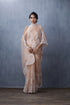 This Neera Vaapika Saree is made of luxurious silk organza, enhanced by beautiful Aari Embroidery. Its light peach color is perfect for special occasions. Its intricate artistry makes it an ideal choice for any wardrobe.