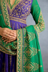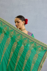 Wrap yourself with the elegant Mayuri Aamina Odhni. Crafted with a gorgeous Chinon Georgette fabric and embellished with Pearls, Zari and Dori embroidery, this Odhni brings a hint of elegance to every outfit.